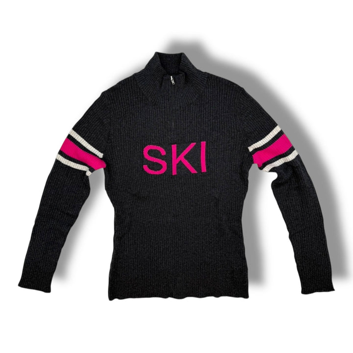Created custom for Willi's, the Ski 1/4 Mock Neck Sweater is the perfect choice for effortlessly showing off your love of the sport. In two exclusive colorways, this sweater is a must-have addition to your winter wardrobe. A navy sweater with red text is perfect for the upcoming Olympic year, and the pepper sweater with pink text adds a pop of color and fun to your sweater collection. This 95% cotton, 5% cashmere construction is great for everyday wear, keeping you comfortable, cozy, and stylish all season long.