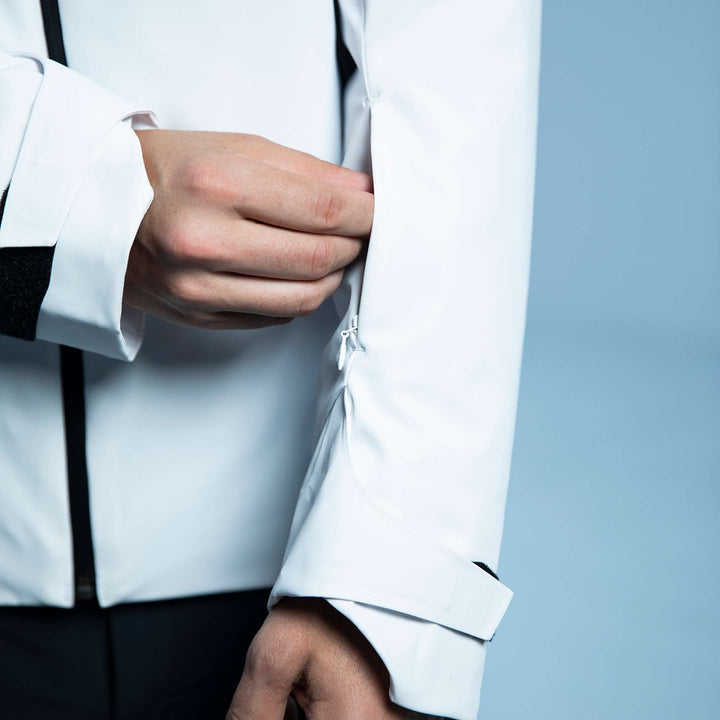 - Pockets: "Dual zip ventilation Quick wrist adjusters Lycra cuffs Breath ventilation IC pocket Goggle pocket Powder skirt Back pocket"