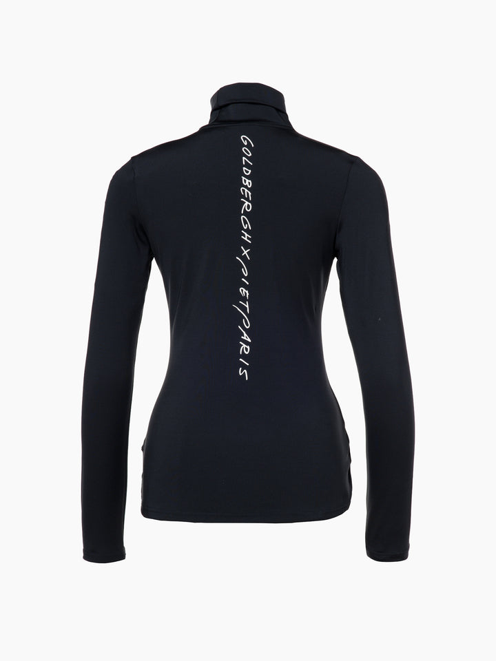 Features for the Fatale Womens Tee- : "Powerstretch interlock Turtleneck collar Long sleeves Metal brand label on upper sleeve"