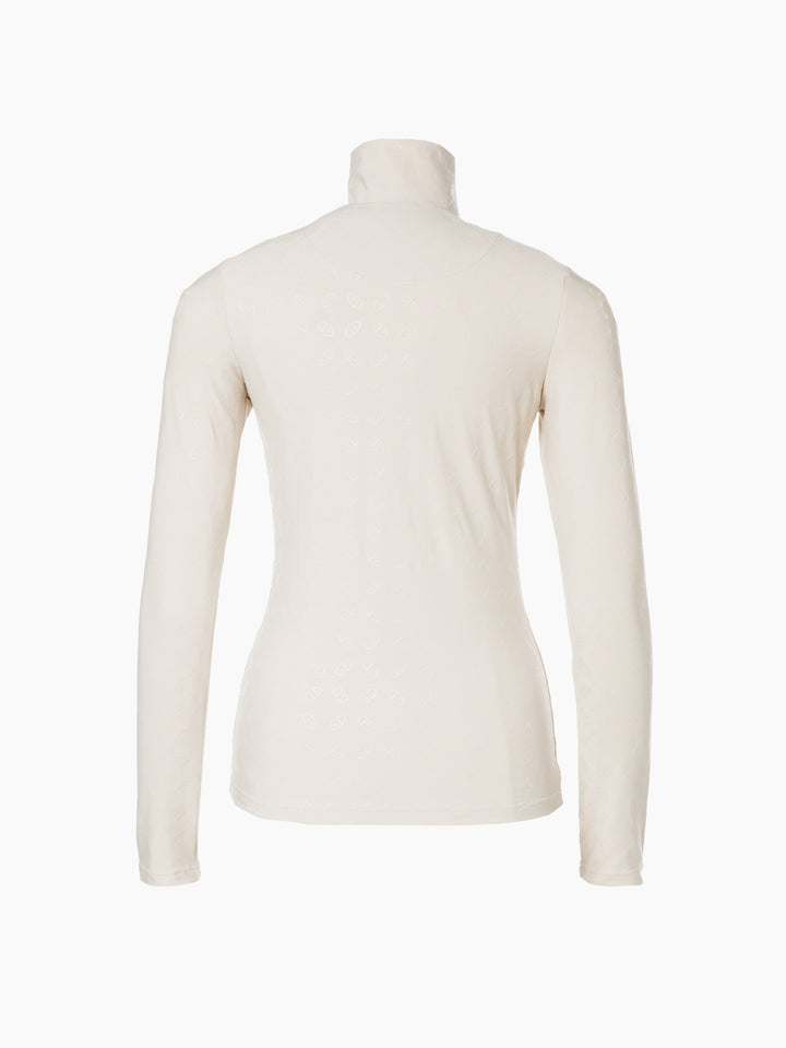 Features for the Icon Ski Pully Womens- : "Close fitting collar Longer length front ½ zip Metal brand label on upper sleeve"