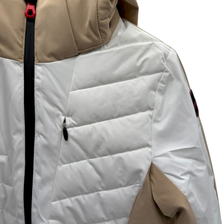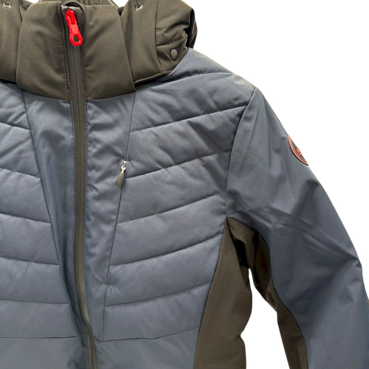- : "Detachable hood Chin guard on the front zip Water-repellent front zip Adjustable hem and cuffs Fixed snowgaiter Snow gaiter with anti-slip silicone band 2 layer fabric 2 way stretch Surface water resistant PFC-free"