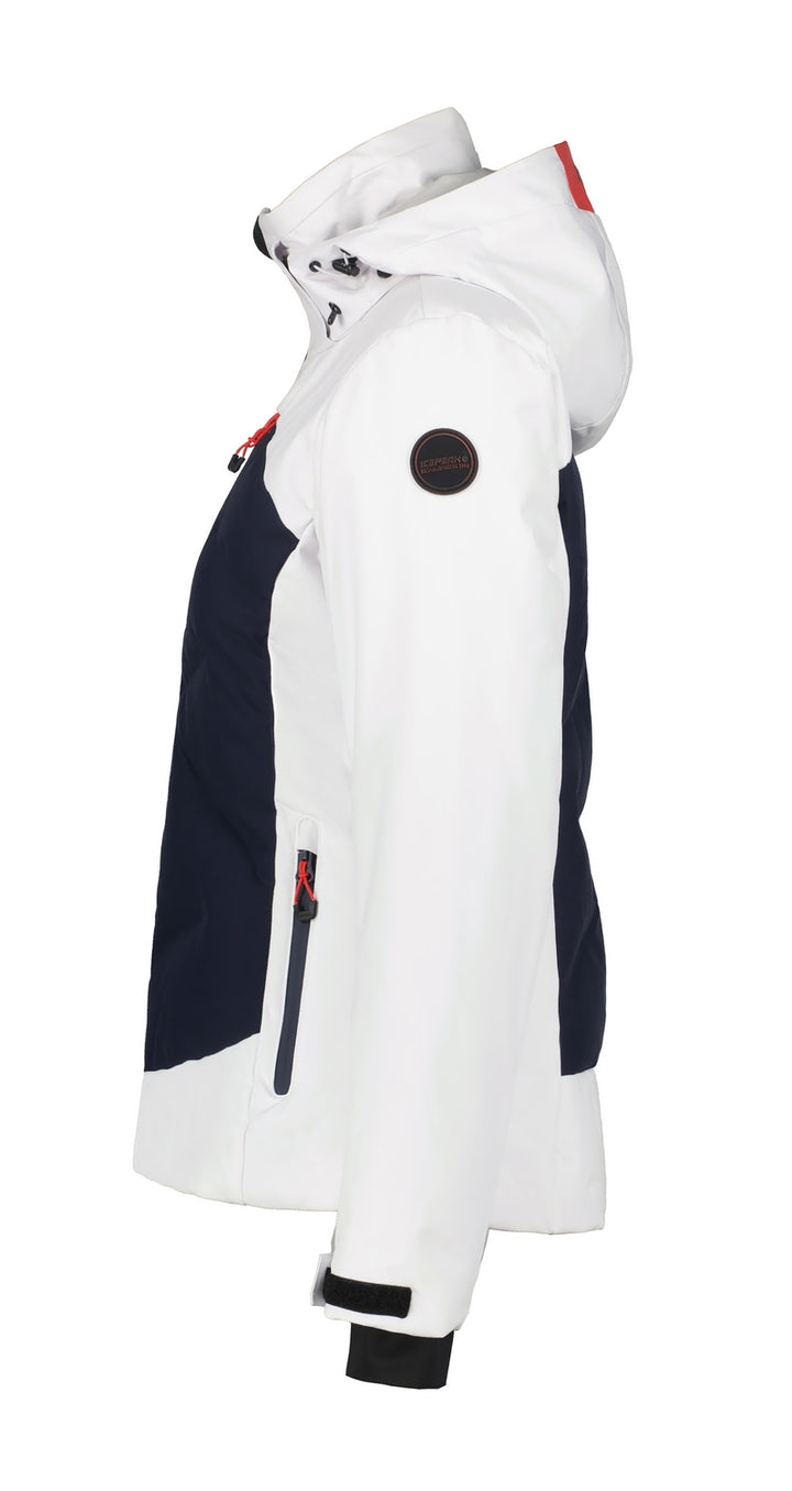 The Flovilla Women's Jacket offers a new twist on classic alpine style. Features like articulated elbows, water-resistant zippers, and an anti-slip snow gaiter make this jacket performance-ready. Thanks to the 120g of insulation and two-way stretch, two-layer fabric with a 10K waterproof membrane, you'll stay comfortable all day. A wind placket and adjustable hood bolster your protection from the elements. Several pockets offer storage convenience, so you'll be ready to hit the mountain with ease and in style.
