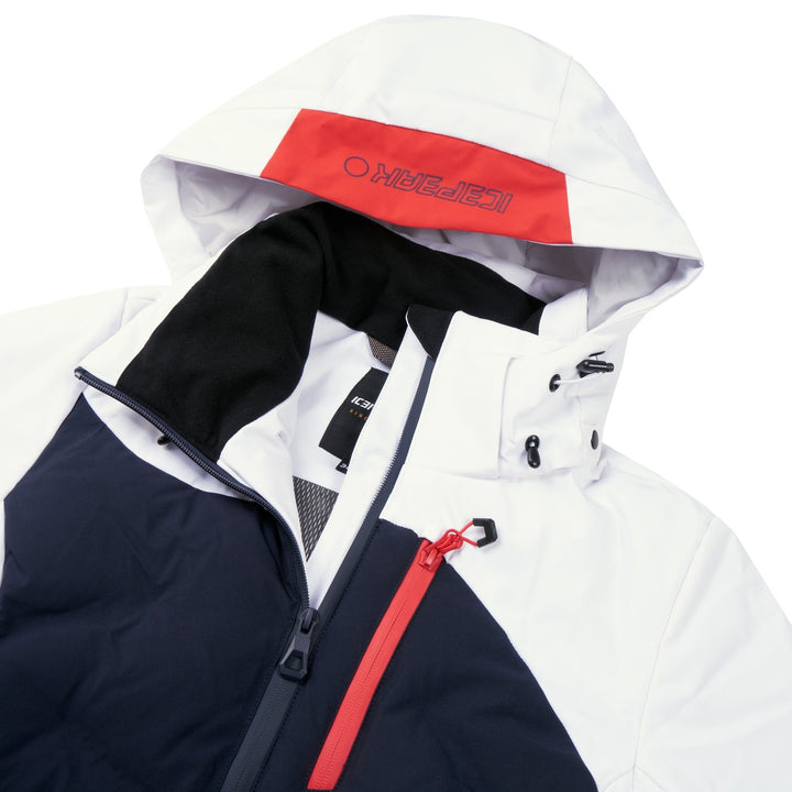 - : "Detachable hood Two-way-adjustable hood Chin guard on the front zip Wind placket Water-repellent front zip Adjustable hem Adjustable cuffs Articulated elbows Comfortable inner collar Elastic inner cuffs with thumbholes Fixed snowgaiter Snow gaiter with anti-slip silicone band 2 layer fabric 4 way stretch Surface water and wind resistant PFC-free"