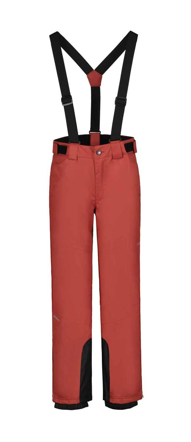 Stay warm and dry during the winter with Icepeak Lenzen Jr Pants. These waterproof insulated pants come with removable suspenders, making them perfect for skiing and other winter activities. The high elastic waist and snow gaiters on the legs keep snow out, while the waterproof and windproof fabric and taped seams ensure maximum protection. Additionally, the pants feature reinforced scuff guards on the inner leg for added durability.
