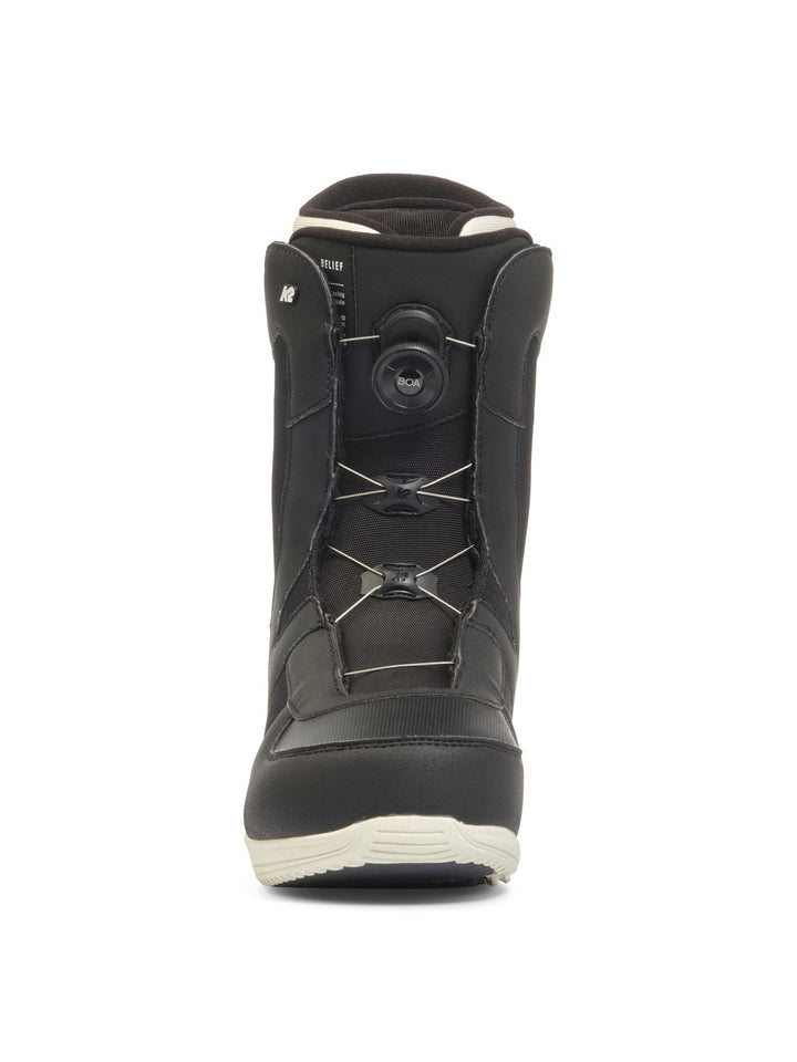 The Belief is a solid no frills boot that will get you out on the hill with ease. Through the simple boa design you wont be worrying about tieing up long and most likely soggy or frozen laces. The M1 Boa dial is simple, pull the dial out to release the cable and slide your foot in, push the dial in and with a quick twist youll be on the hill in no time. Pop the dial out at lunch and you friends will surley be jealous. With a soft flex and soft and warm EVA foam liner you'll be warm all way. K2 made this whole boot with the beginner in mind during the whole process. The low pro outsole is super light and grips well in adverse conditions.