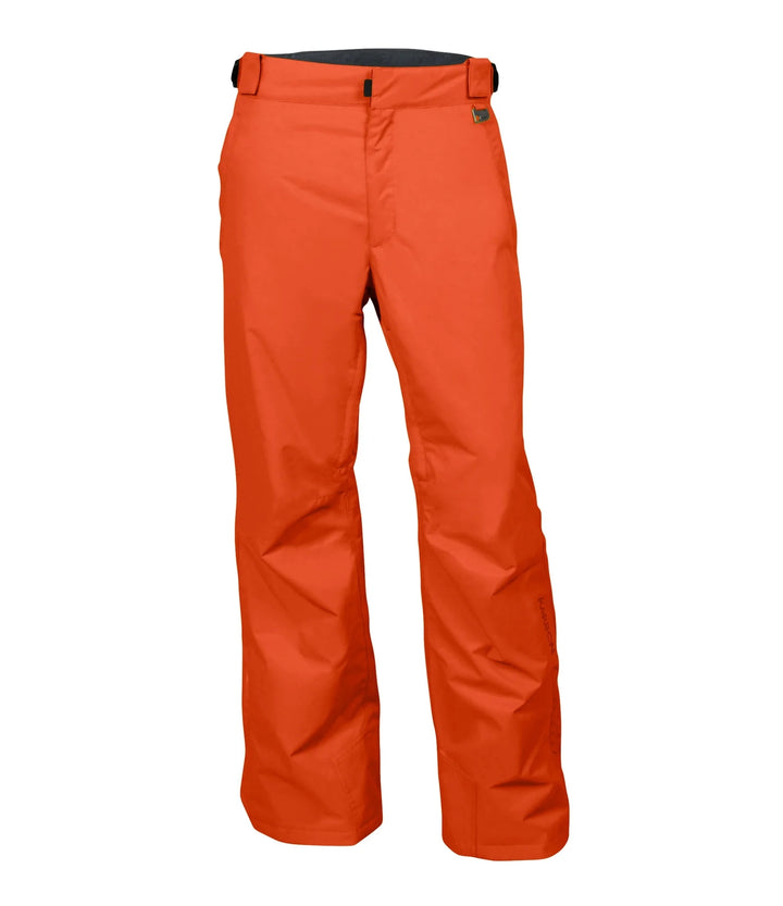 - Pockets: "Elastic waist adjustment system Karbon jacquard suspenders (removable and adjustable) Double fabric scuff guard Inner mesh thigh vents Inner elasticized snow cuff with snap and velcro closure Embroidered Karbon logo Seam sealed Key clip Zippered gusset on lower leg"