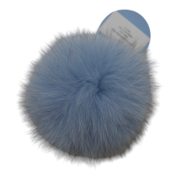 The natural Blue Fox Fur pom is crafted from 100% Real Blue Fox fur. The Large size provides a compact but full pom with short tips.