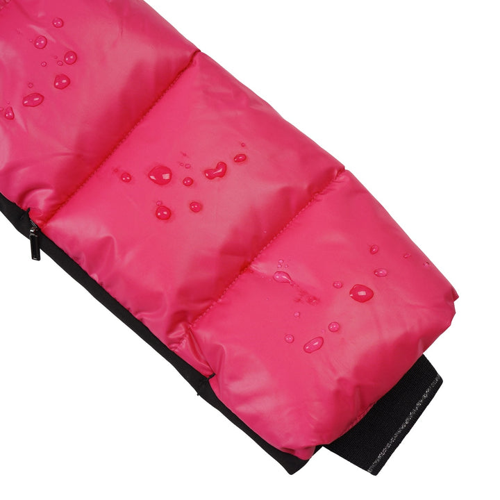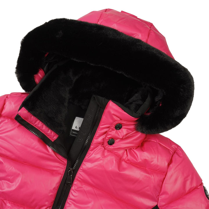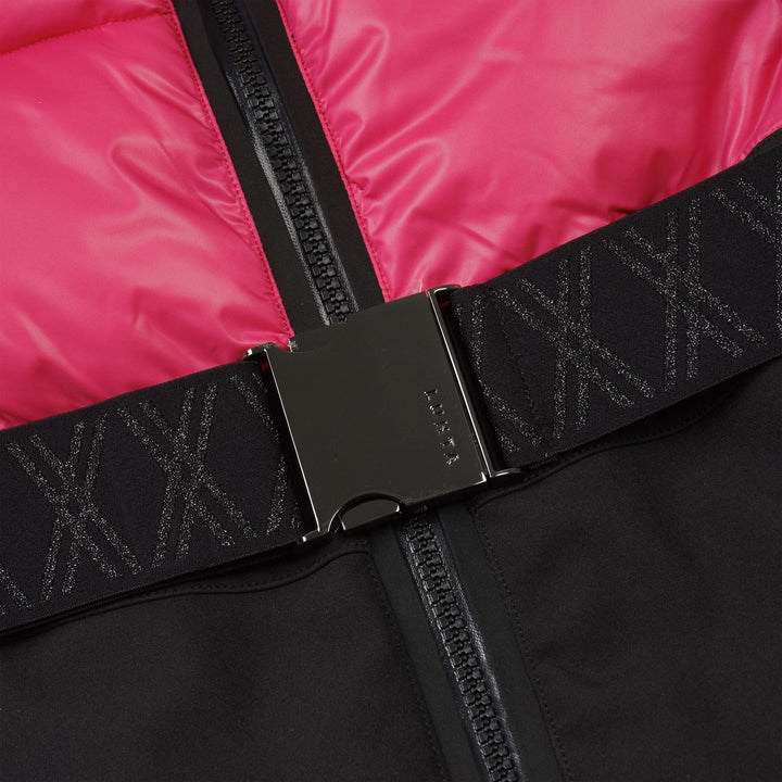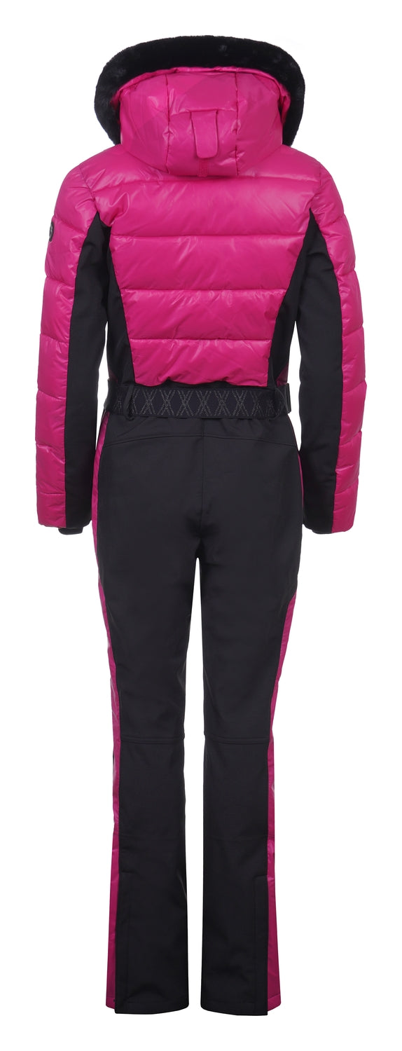 - : "Recycled PA lining / stretch linging Detachable and adjustable hod Adjustable leg bottoms Snow gaiter with anti-slip silicone band Ribbed inner cuffs Articulated elbows Detachable belt Elastic belt Belt loops Metal buckle Water repellent front zip Zips at leg bottoms Faux-fur inner collar Interior shoulder straps Logo label"