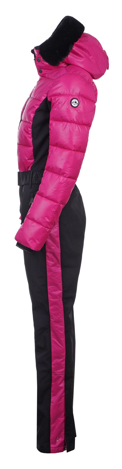 The Luhta Sammalvaara Women's Suit is the ultimate statement piece in your winter snow kit. The 4-way stretch softshell makes for easy movement, and also creates a figure-flattering look. With details like a faux-fur trim, detachable belt with a metal buckle, a faux-fur inner collar, and an adjustable and detachable hood, you'll look luxurious and stylish. This suit also comes equipped with all of the ski performance technology you could want. With 10K waterproofing and warm insulation, you'll stay comfortable throughout the day. Finished with snow gaiters, water-repellent zips, and a designated ski pass pocket, the Luhta Sammalvaara Suit is slopeside ready.