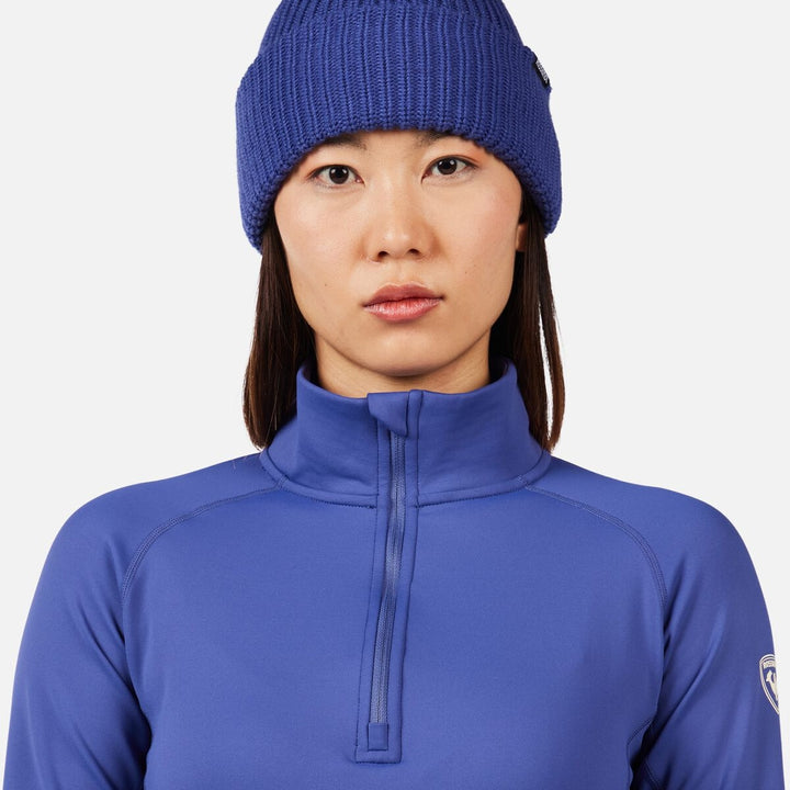 Stay warm and keep moving with the women's Rossignol Mid Layer Stretch Half-Zip. This high-quality fleece is perfect for layering in any season. Its stretchy fabric allows for full mobility and ensures you stay comfortable all day long, whether you're hitting the trails, running errands, or enjoying apres ski.