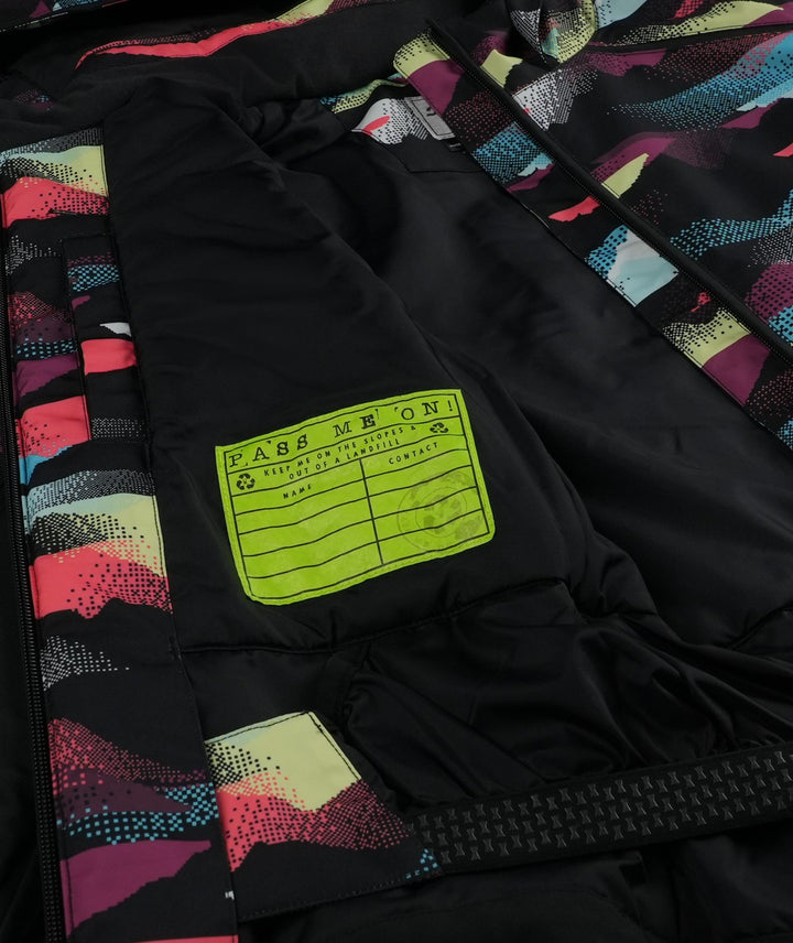 - Fit: "Hand pockets Data card pocket on sleeve Internal chest pocket with hook and loop closure Internal mesh goggle pocket"