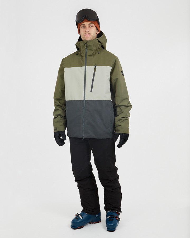 - Pockets: "Handwarmer pockets Chest pockets Zippered ski pass pocket Internal mesh goggle pocket Internal Velcro pocket"